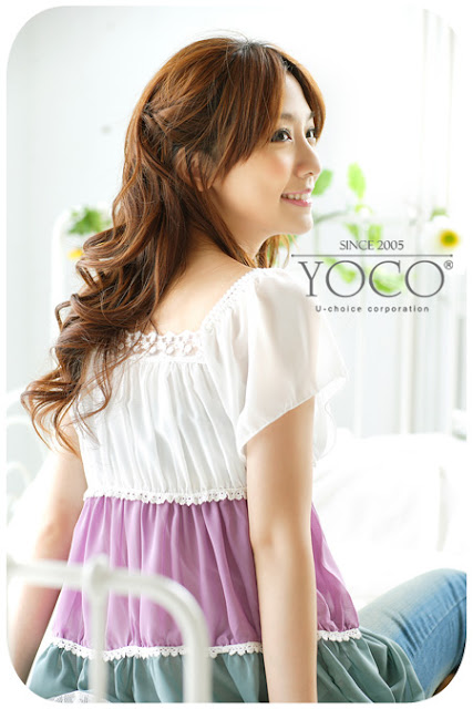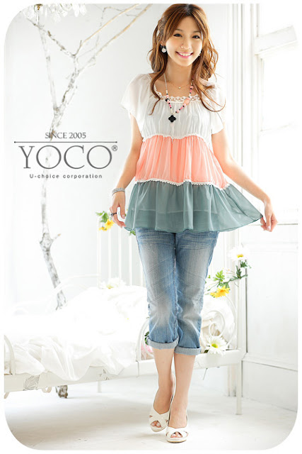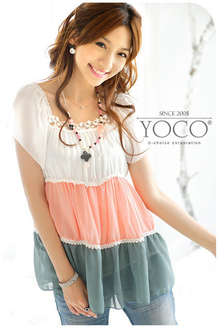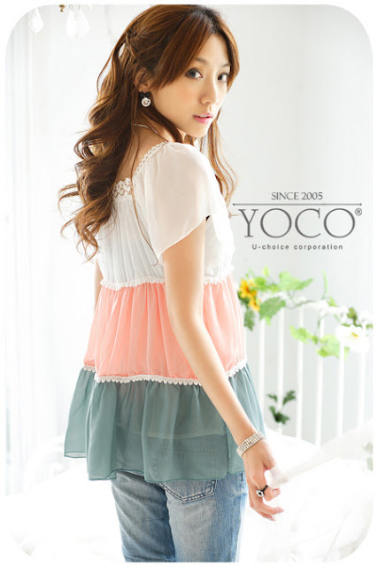 Color-interval Chiffon Blouse (S M L)